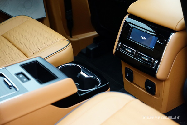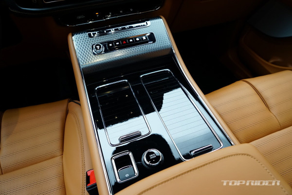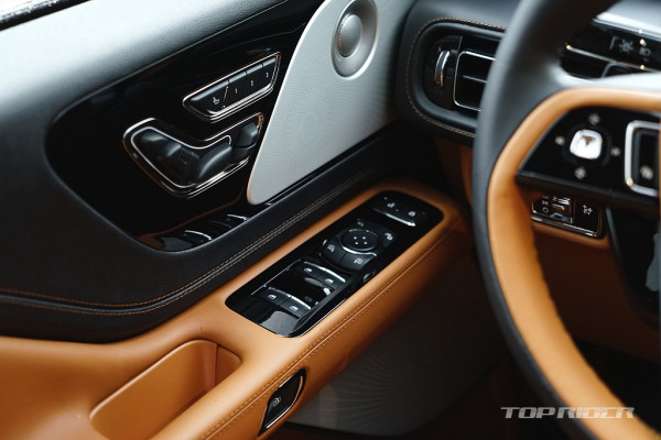 실내 디자인은 수평형 대시보드를 중심으로 소재의 고급감에 집중한 모습이다. 블랙레이블은 블랙의 인비테이션 테마와 탄 컬러의 플라이트 테마로 나뉘는데, 시승차는 플라이트 테마다. 대부분의 패널을 가죽으로 둘렀다. 서배너(Savannah) 가죽은 부드러움이 남다르다.