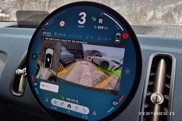 앱을 통하면 차량 밖에서 차를 이동시키는 것도 지원한다. 올해 국내에 판매가 시작되는 양산차의 가장 큰 변화가 바로 자동주차다. 일반적인 주차장에서는 대부분의 사람보다 실력이 좋다. 과거에는 차량간 간격만 인식했으나, 이제 주차선을 인식해 텅빈 곳에서도 가능하다.