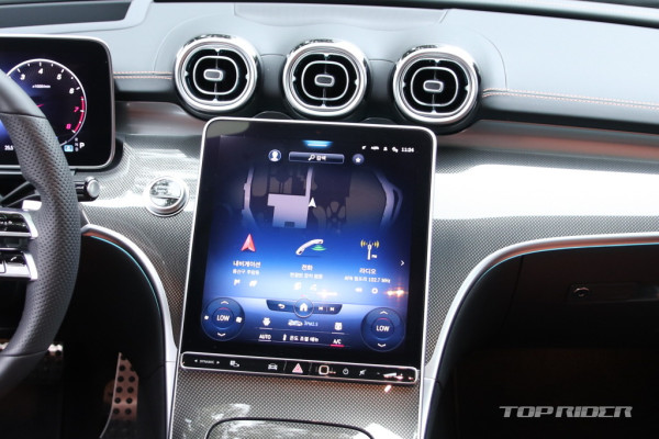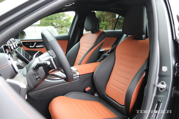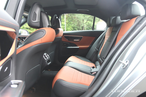 신형 C클래스의 1열 시트 포지션은 낮은 편인데, 국산차 기준 스팅어 수준이다. 1열 레그룸 공간은 비교적 크기가 큰 변속기가 실내 일부를 침범한 탓에 좌우 폭이 좁다. 특히 발 공간이 좁고 조수석에서도 소위 ‘쩍벌’ 자세가 어렵다. 2열 레그룸은 기존 대비 크게 개선됐다.