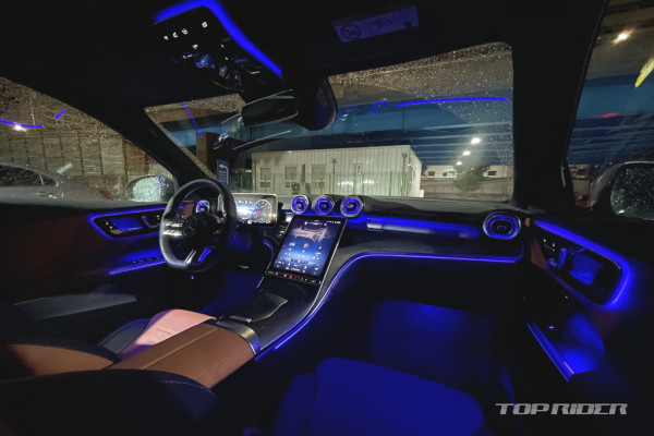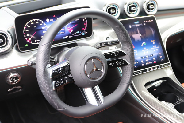 신형 C클래스는 실내도 신형 S클래스와 유사한 레이아웃이다. 12.3인치 디지털 계기판과 11.9인치 세로형 센터페시아 디스플레이, 차세대 지능형 스티어링 휠, 64컬러 앰비언트 라이트 등이 탑재됐다. 센터페시아 디스플레이와 대시보드는 운전자를 향해 약 6도 기울어졌다.