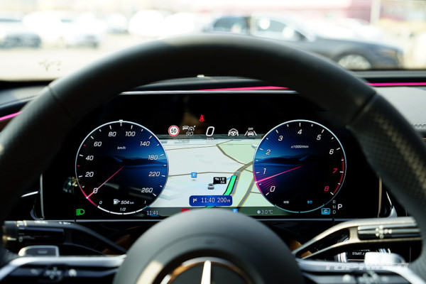 디지털화는 신형 E클래스의 핵심 요소다. 기본으로 적용된 커다란 헤드업 디스플레이(HUD)는 전자식 계기판보다 많은 정보를 전한다. E300 AMG 라인에는 기본, 익스클루시브에서는 옵션 사양인 조수석 대시보드의 슈퍼스크린은 주행이 시작되면 운전석에서는 안보인다.