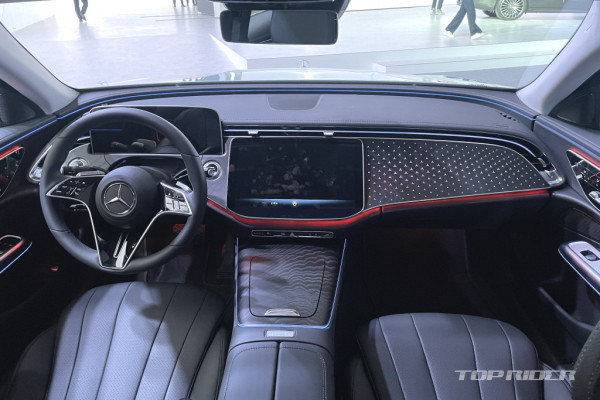 실내는 수평형 대시보드를 기반으로 14.4인치 디스플레이가 분위기를 주도한다. 대시보드 상단의 셀프 카메라는 USB 저장장치에 사진이나 영상을 저장할 수 있다. E300 이상에서 기본인 액티브 앰비언트 라이트, 부메스터 4D 서라운드는 가격 인상분을 상쇄할 아이템이다.
