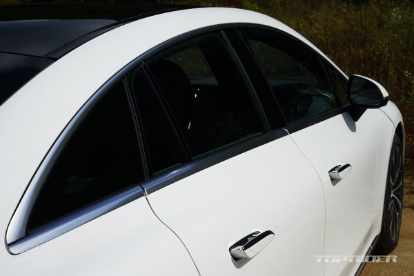 EQE의 공기저항계수는 업계 최고 수준인 0.22다. 윈드실드부터 리어엔드까지 활처럼 이어진 윈도우라인을 벤츠에서는 원-보우(one-bow) 라인이라고 부른다. 이같은 형상은 공기저항을 줄이는데 큰 역할을 하는데, 최근 출시된 아이오닉6에서도 유사한 그래픽을 보여준다.