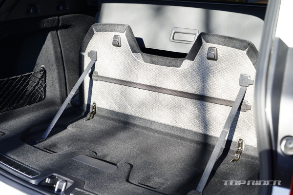 트렁크 구성도 언급하지 않을 수 없는데, 간단한 짐을 넣을 경우 바닥을 세워 놓으면 트렁크 개폐구 가까이에 짐을 고정할 수 있고, 쇼핑백을 걸어 고정할 수 있는 밴드를 갖췄다. 볼보 고유의 리어 서스펜션 잇점을 통해 트렁크 상하는 물론 좌우 폭도 차체 대비 여유롭다.