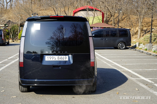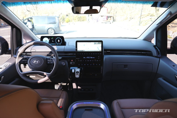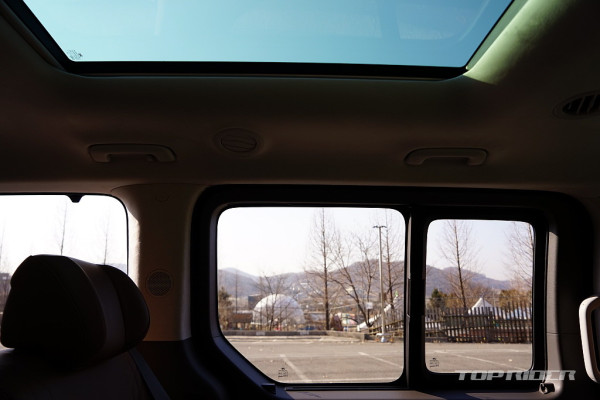 스타리아의 가장 큰 강점은 개방감이다. 2미터에 달하는 전고는 하이루프 스타일로, 카니발 하이리무진의 전고 2055mm에 가깝다. 때문에 이동시 차창 밖으로 보이는 풍경이 남다르다. 2열 선루프 면적도 크다. 어린이들은 차내에서 허리를 굽히지 않고도 이동이 가능하다.