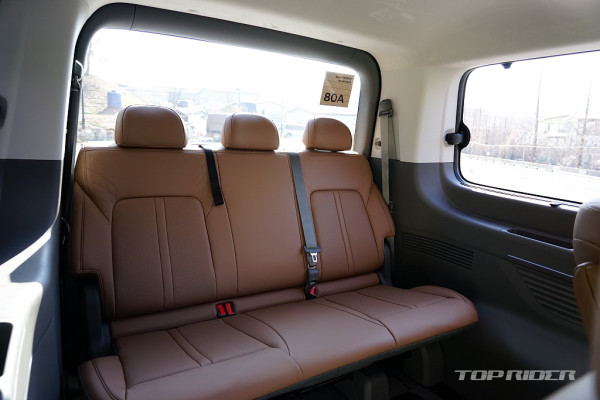 오히려 100km/h 전후의 고속도로 구간에서는 2열 승차감이 좋은 편으로 장거리 주행에서는 큰 불만이 없겠다. 2열 시트를 완전 고정식이나 전동 슬라이딩, 혹은 댐퍼 추가 등의 방식으로 고정성을 개선한다면 카니발이나 고급 미니밴 수요를 상당히 흡수할 잠재력이 있다.