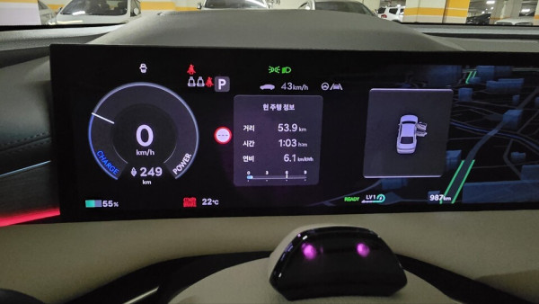 이번 시승에선 서울에서 출발해 파주 임진강 공원까지 약 100㎞ 구간을 주행했는데, 고속도로 주행이 대부분이었음에도 불구하고 전비가 6.1㎞/kWh에 달했다. 배터리 용량이 94.5kWh라는걸 감안하면 실제 주행가능 거리는 500㎞를 훌쩍 넘을 것으로 예상된다.