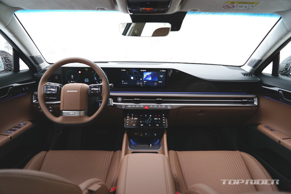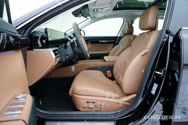 시승차는 신형 그랜저 하이브리드 캘리그래피(5121만원)에 파노라마 선루프(118만원), 하이테크 패키지(147만원), 프리뷰 전자제어 서스펜션2(128만원), 뒷좌석 전동식 도어커튼(49만원)이 추가된 모델로 차량 가격은 5563만원(세재 혜택 후, 개소세 3.5%) 사양이다.
