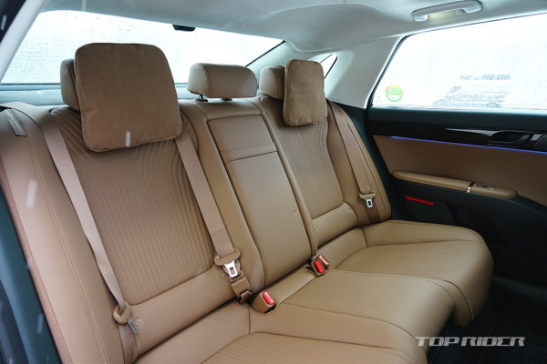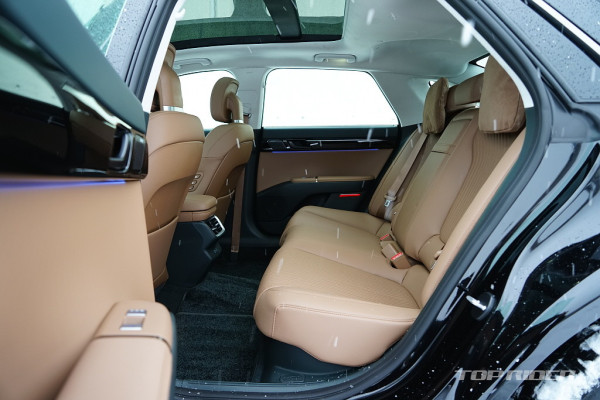 2열에서는 그랜저 내연기관과 하이브리드가 차이를 보이는데, 풀패키지 기준 하이브리드에는 2열 리클라이닝이 제공되지 않는다. 배터리팩이 뒷좌석 하단에 있기 때문에 옵션에서 제외됐다. 하지만 2열 리클라이닝 기능이 빠지며 2열 헤드룸이 10mm 가량 추가로 확보됐다.