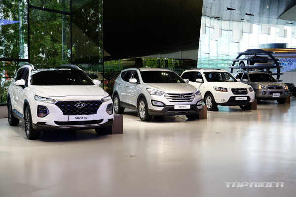 현대차 1세대 싼타페(SM)는 도심형 SUV를 표방하는 모노코크 기반 SUV로 2000년 처음 선보였다. 볼륨감 보디와 승용 감각의 구성으로 높은 인기를 얻었다. 이후 2005년 2세대(CM), 2012년 3세대(DM), 2018년 4세대(TM), 2023년 5세대(MX5)로 5.5년 주기로 진화했다.