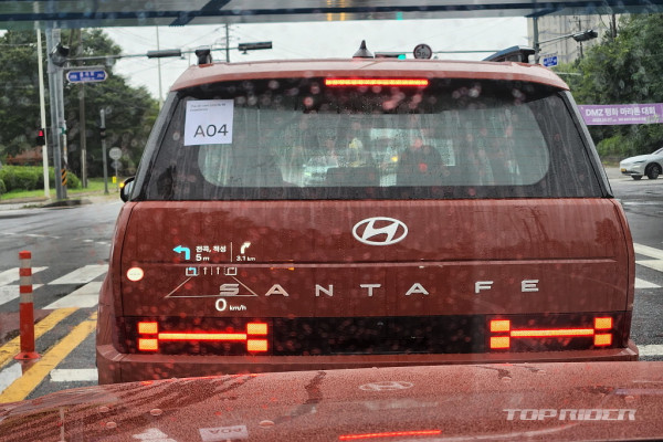신형 싼타페의 면을 강조한 디자인과 다른 소재와 컬러를 조합한 구성은 꽤나 고급스럽다. 이제는 보급형 브랜드를 넘어서 준프리미엄 브랜드를 겨냥한 모습이다. 후면부 리어램프의 위치는 디자인 완성도상 좋은 부분이나, 정차시 뒤에서는 방향지시등이 보이지 않는다.