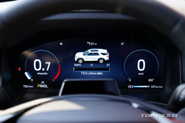 포드의 가솔린 터보엔진은 상당히 매력적인데, 일반유를 권장하면서 충분한 파워와 연비를 보여준다. 국내 모델로는 GV80의 2.5 터보와 제원상 유사한데, 실제 퍼포먼스는 익스플로러의 2.3 터보가 크게 앞선다. 반복되는 가감속시 후륜으로 밀어주는 감각은 차별화 포인트다.