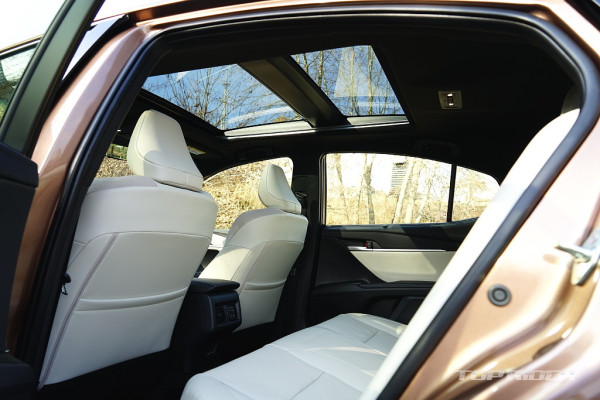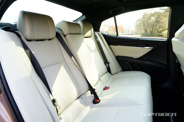 실내공간은 기존과 큰 차이가 없지만 시트백의 볼륨을 줄여 체감 공간이 소폭 늘어났다. 다만 1열 시트포지션이 다소 높아진 점은 아쉽다. 반면 2열 거주성은 상당히 만족스럽다. 작은 각이지만 전동 리클라이닝을 제공해 편안함이 남다르다. ES300h에도 없는 편의사양이다.