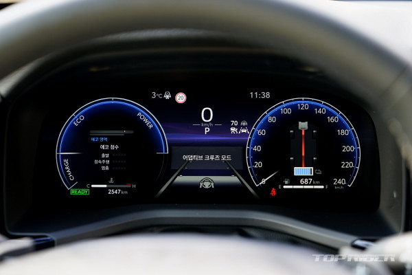 적극적인 가감속이 반복되는 상황에서도 배터리 충전량이 꾸준히 유지되는 점은 토요타 2-모터 하이브리드의 강점이다. 스포츠모드에서는 오히려 전력량이 남아돈다. 중저속에서의 승차감은 부드럽고 안정적이다. 요철이나 과속방지턱을 넘는 동작에서도 큰 불만이 없다.