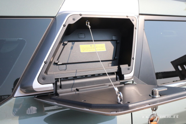 후면부에도 엠블럼 대신 ‘Ssangyong’ 레터링이 사용됐는데, 엠블럼이 없는 수출형 모델까지 염두에 둔 설정이다. 후면부에는 스페어 타이어를 형상화한 핵사곤 타입 가니쉬가 탑재됐다. 특히 LED 테일램프의 제동등은 태극기의 건/곤/감/리 중 ‘리’의 문양을 표현한 것이다.