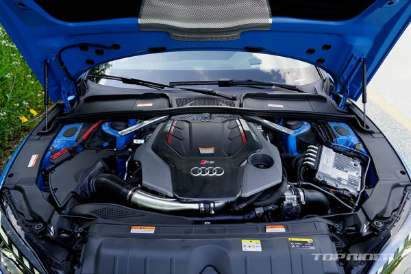 RS5 스포트백의 주요 관전 포인트는 파워트레인 구성이다. 전통적으로 아우디의 고성능 RS 라인업은 8기통 터보나 자연흡기 엔진이 적용된다. 하지만 아우디는 RS5의 모델 체인지를 거치며 기존 V8 자연흡기 엔진을 V6 바이터보로 대체, 무게를 줄이고 효율성을 높였다.