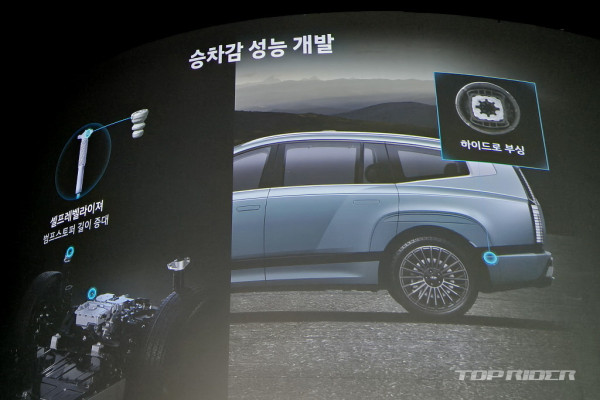 아이오닉9은 E-GMP 플랫폼의 최종형 성격이다. 아이오닉9 개발시 중점을 둔 부분은 전기차(EV) 고객 니즈 부문에서 주행거리(AER, All electric range) 확보와 NVH 성능 확보, 그리고 대형 SUV 고객 니즈 부문에서 승차감과 카고/토잉(2.5톤) 용량 확보다. 까다로운 조건들을 만족해야 한다.