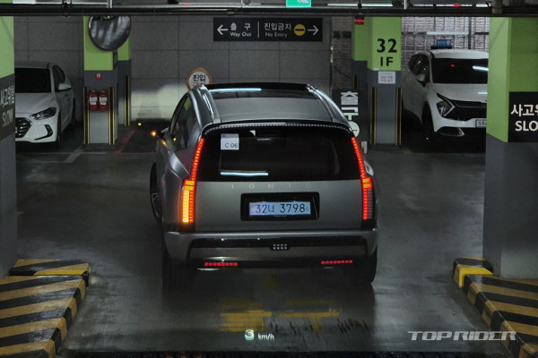 최소회전반경은 늘어난 휠베이스를 고려하면 상당히 개선됐다. 별도의 장비가 추가되지 않았지만 조타각을 늘리는 방식을 사용한 것으로 보여진다. 적어도 후진주차시 이상한 궤적을 그리지는 않는다. 디지털 사이드미러의 돌출된 크기를 비약적으로 줄여 주차시에도 접히지 않는 방식이다.