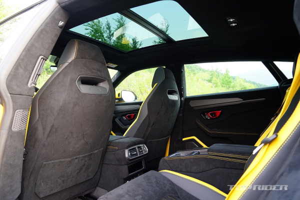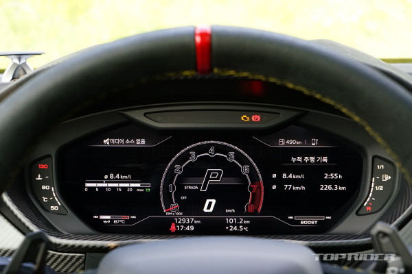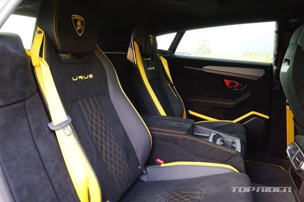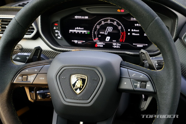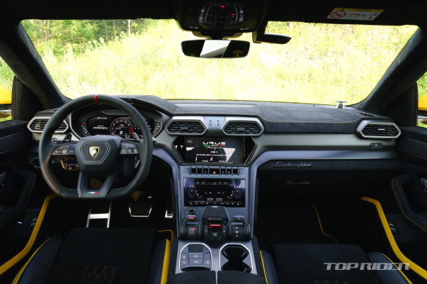 운전석 시트포지션은 SUV 기준으로는 낮고 세단보다는 높은 설정이다. 람보르기니 2도어 스포츠카 대비 시야가 아주 좋은 편으로, 전방은 물론 측후방 시야까지 넓게 확보된다. 냉간시 시동음은 우렁차다. 아크로포빅 배기 시스템이 기본으로 황소가 포효하는 사운드다.