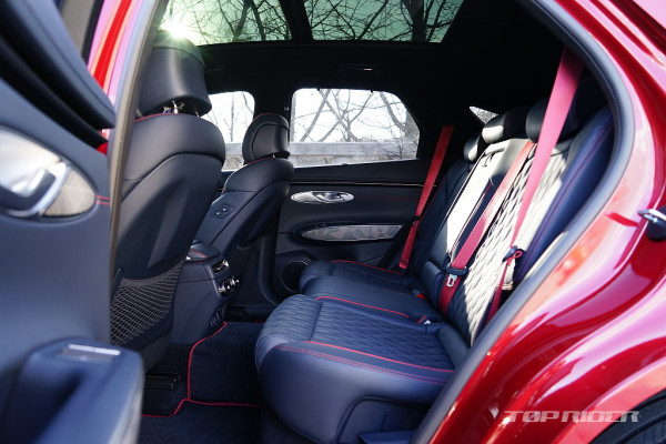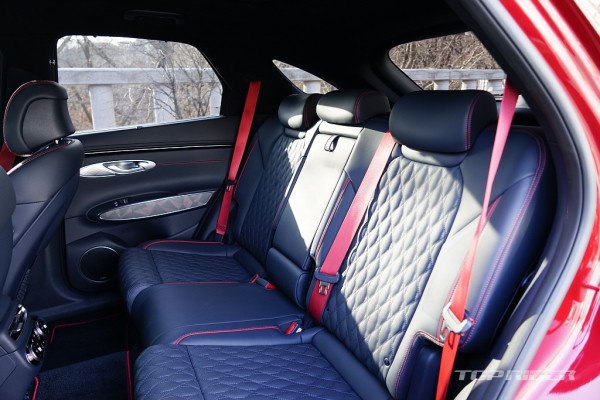 실내 공간은 패밀리카로도 손색 없는 수준으로, 2도어 쿠페에 가까운 G70의 공간과 비교하면 대단히 여유롭다. 반면 트렁크 공간은 여타 제네시스 라인업처럼 상하 깊이가 얕아 좁게 느껴진다. 공조장치 다이얼이나 원형 컨트롤러의 조작감은 향후 개선이 필요한 부분이다.
