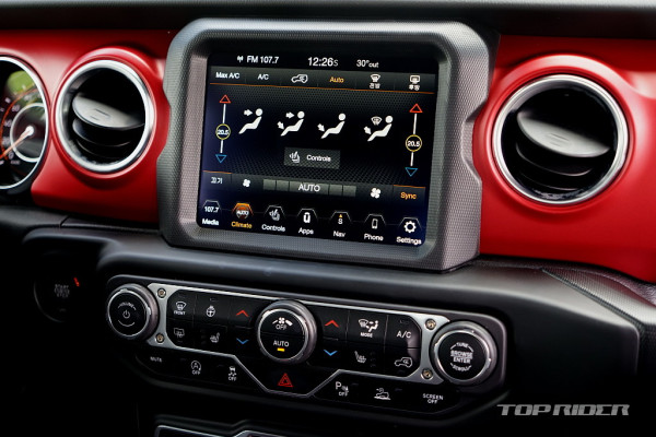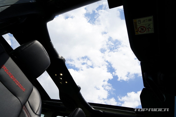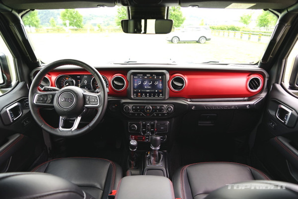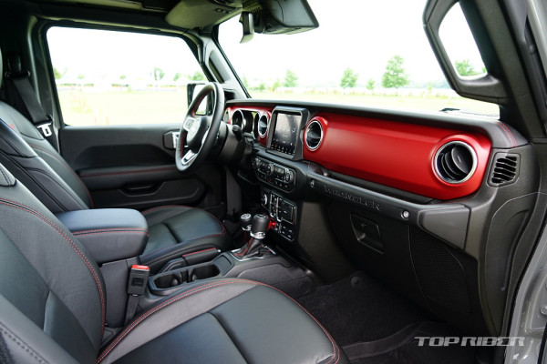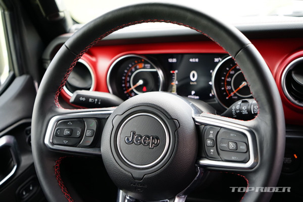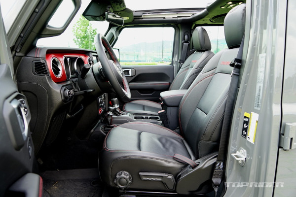 시승차는 2023 랭글러 루비콘 중에서도 전동식 오픈탑이 제공되는 파워탑 모델이다. 1열은 물론 2열까지 완전히 열리는 캔버스탑은 96km/h 이하에서 언제나 개폐가 가능한데, 주차장에 루프를 보관하기 어려운 국내와 같은 주차 환경에서도 오픈 에어링을 즐길 수 있다.