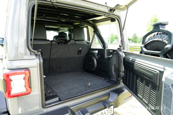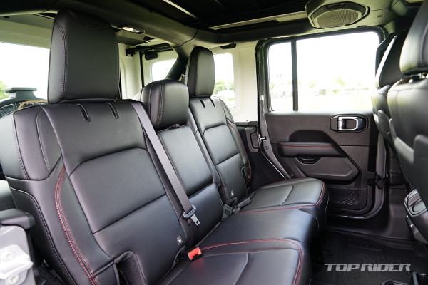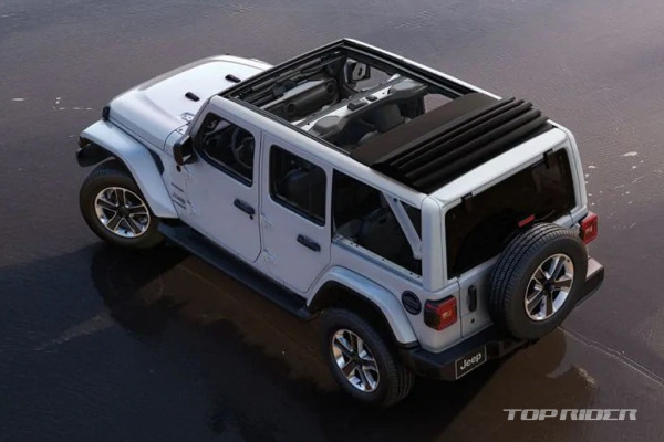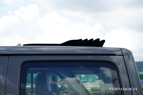 윈드실드가 운전자 머리 위까지 가려지는 일반적인 쿠페 기반의 오픈카와 달리 실내 전체가 열리는 랭글러 파워탑의 개방감은 대단하다. 필요시 루프 오픈과 함께 수동으로 리어 쿼터 윈도우를 분리할 수 있는데, 스토리지 가방을 제공해 분리 적재시 파손을 예방할 수 있다.