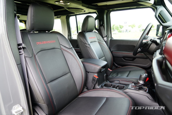 그 밖에 레드 색상의 트레일 레이티드(Trail Rated) 배지, 루비콘 전용 후드 데칼, 17인치 알루미늄 휠이 루비콘의 특징이며, 4:1 락-트랙(Rock-Trac) HD 풀타임 4WD, 트루-락(Tru-Lok) 프론트 리어 전자식 디퍼렌셜 잠금장치, 전자식 프론트 스웨이바 분리장치가 기본이다.