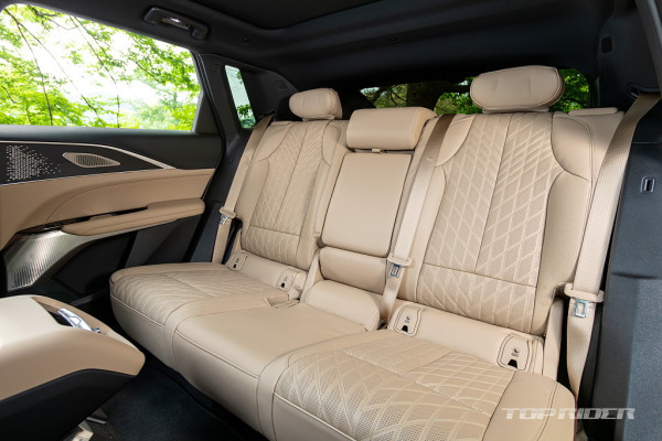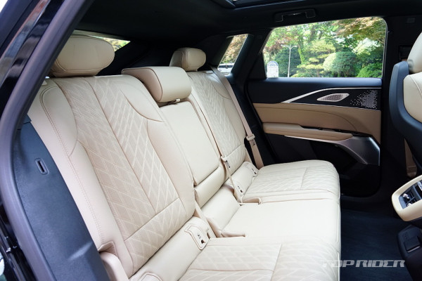 2열 공간은 거주성과 쿠셔닝이 좋은 모습을 보인다. 특히 2단으로 조절 가능한 등받이는 세운 상태에서도 편안한 자세를 연출한다. 2열 등받이 각도가 다소 서 있는 것을 선호하는 독일계 전기차와 비교하면 무척이나 반가운 셋업이다. 시승을 통해 확인하는 것을 추천한다.