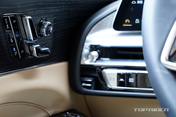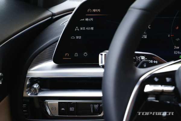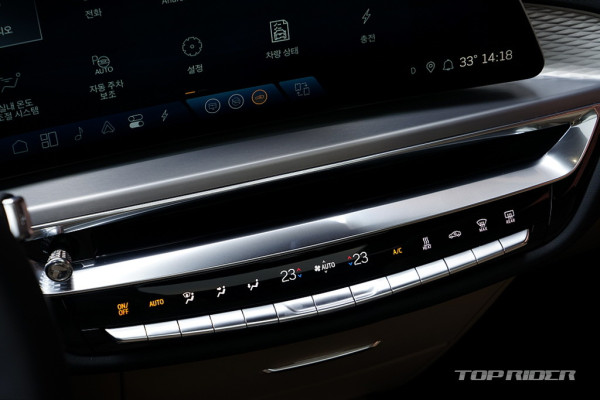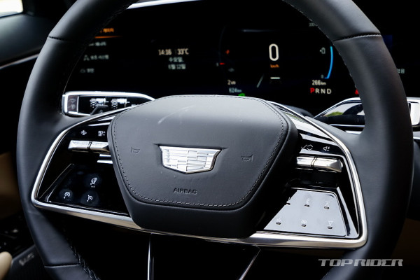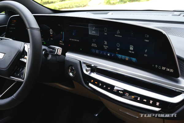 33인치 커브드 OLED 디스플레이는 이제 캐딜락의 대표적인 특징이 됐다. 선명함과 해상도가 뛰어난데, 애플 카플레이나 안드로이드 오토 풀화면이 지원되지 않는 점은 아쉽다. 스티어링 컬럼에 위치한 기어레버나 당겨 올리는 도어핸들, 와이퍼 조작부는 새로운 방식이다.