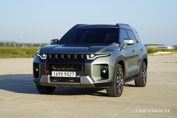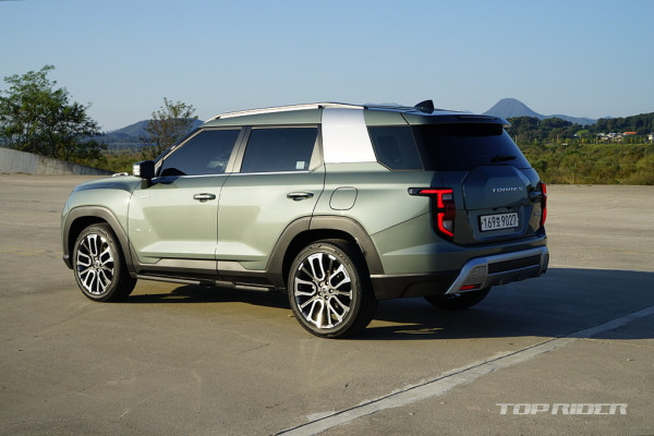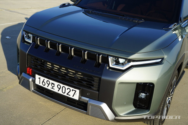 외관 디자인은 토레스의 가장 큰 매력 중 하나다. 정통 SUV 분위기의 전면부 디자인은 도심형 SUV가 넘쳐나는 시대에 시선을 모으는 부분이다. 풀 LED 타입 헤드램프와 방향지시등을 적용해 트림별 고급감 차이가 없다. 보닛 상단의 손잡이형 디테일은 꽤나 재밌는 부분이다.