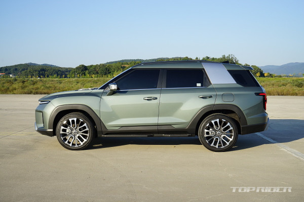 후면에서는 스페어 타이어 형상의 디자인 요소가 눈에 띈다. 그립형 손잡이나 하단부 스키드 플레이트를 통해 오프로더 분위기를 강조했다. 측면부는 디자인 밸런스가 좋은 편이다. 점점 높아지는 루프 디자인이나 실버 컬러의 두툼한 C필러, 히든형 필러 디자인이 확인된다.