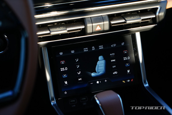 헤드램프 조사각 조절장치는 터치형 통합 컨트롤 패널에 위치하는데, 화면을 좌우로 스와이프 하면 해당 기능을 사용할 수 있다. 미디어 볼륨 조절시 별도의 버튼이 없는 점이나, 인포콘 내비게이션내의 최근 목적지를 삭제할 수 없는 부분은 향후 개선이 필요한 부분이다.