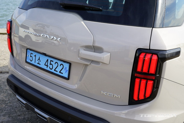 후면에서는 입체감을 살린 리어램프가 새롭게 적용됐다. 전후면 모두 디자인 변화의 방향은 동의하지만, 소재의 고급감이 떨어진 점은 이해하기 어렵다. 특히 기존 토레스의 전면부는 디자인과 함께 소재의 고급감이 만족감을 높이는 요소인데, 다소 성급한 모습이 엿보인다.
