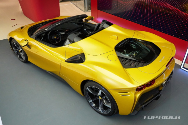 시승차는 SF90 스파이더 모델로, 아세토 피오라노 패키지는 빠진 사양이다. 아세토 피오라노 패키지 선택시 멀티매틱 쇼크 업소버와 탄소섬유, 티타늄 소재가 추가로 적용돼 21kg을 줄여주며, 카본 리어 스포일러가 더해지나, 전륜 리프트 기능이 빠지는 것을 참고해야 한다.