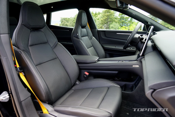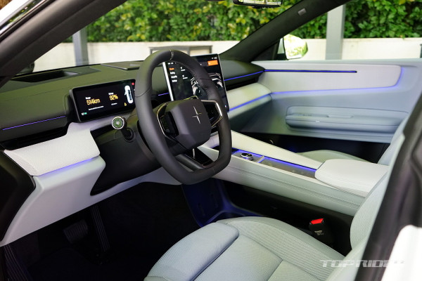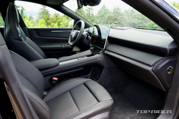 포르쉐 타이칸과 유사한 폴스타3와 달리 수납식 도어핸들은 벤츠 E클래스에 가까운 방식이다. 프레임리스 도어와 사이드미러는 멋스러운 요소다. 실내에 들어서면 스웨덴 공산품 특유의 미니멀한 감각이 전달된다. 화려한 디자인을 사용하지 않아도 편안하고 고급스럽다.