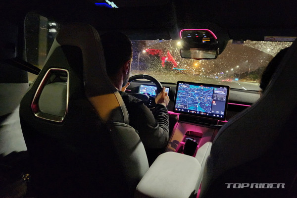 계기판상 97% 충전 주행거리는 543km, 100% 예상은 559km 수준이다. 가속페달을 밟는 양에 따라 리니어하게 가속이 늘어나는 타입으로, 초반 가속력을 강조하지 않았다. 서스펜션 셋업은 부드러운 편, ZF사의 전자식 액티브 서스펜션이 탑재돼 주행모드에 따라 변한다.