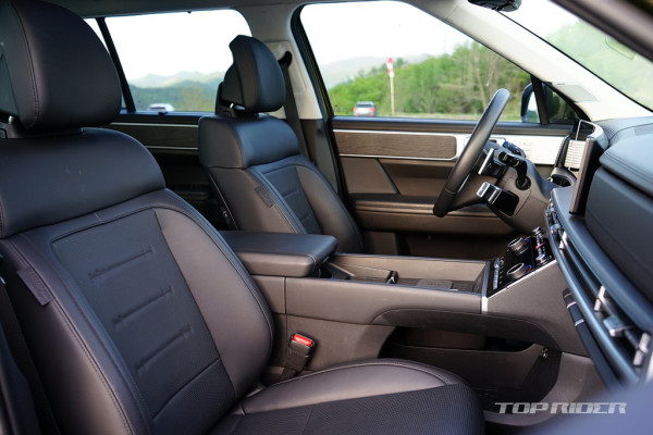 신형 싼타페의 시트포지션은 그간 경험했던 현대차 SUV 중 가장 안정감이 좋다. 좋은 시트포지션 설계시 시트 위치가 높은 SUV에서도 세단과 안정적인 감각이 전달되는데, 장거리 운행시 피로감을 낮춰주는 요소다. 시트 디자인은 제네시스 G90와 유사한 구조로 편하다.