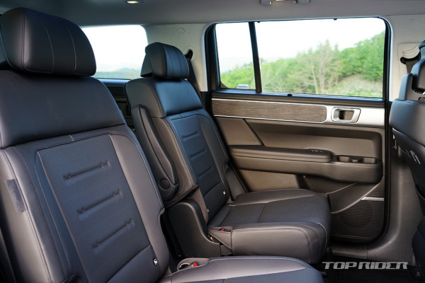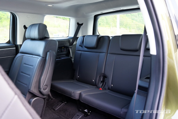 캘리그래피에서는 1열에 레그 서포트가 지원되는데, 차내에서 쉬는 경우 다리의 피로를 줄여주는 요소다. 6인승 기준 2열 시트는 전동으로 조절되는데, 해당 차급에서는 이례적인 호화 옵션이다. SUV 기준 3열 활용도는 크지 않지만, 동급에서는 가장 여유로운 구성이다.