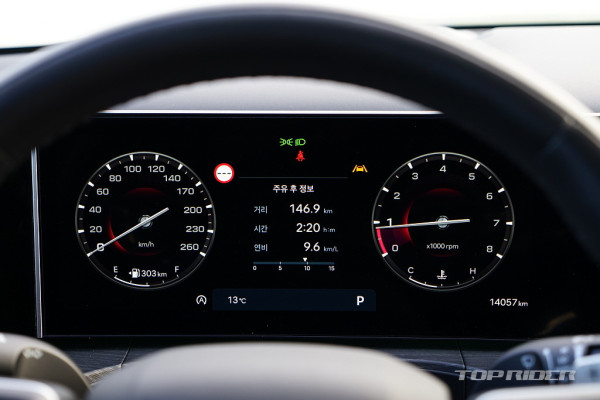 풀가속시 펀치력은 상위 모델인 팰리세이드 3.8 가솔린을 앞선다. 다만 일상주행에서 2000rpm 이하의 저회전을 유지하려는 성향이 강한데, 본격적인 힘은 2000rpm부터 나와 경쾌함은 다소 부족하다. 가속시에는 엔진 회전을 일부 상향해 만족감을 높여줄 필요가 있다.