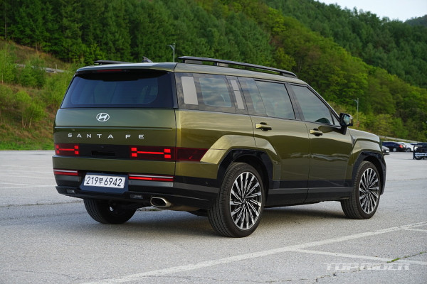 현대차 디 올 뉴 싼타페 캘리그래피 2.5T 2WD를 시승했다. 신형 싼타페(MX5)는 풀체인지를 거치며 기본기를 비롯한 전반적인 완성도가 높아진 것이 특징이다. 특히 전동식 2열 시트와 비교적 여유로운 3열, 프리미엄 브랜드와 유사한 컬러 구성은 쏘렌토 대비 앞서는 부분이다.