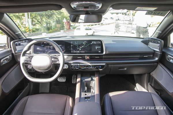 실내에는 스티어링 휠 인터렉티브 픽셀 라이트, 듀얼 컬러 앰비언트 램프, 12.3인치 디지털 계기판 및 디스플레이 등이 적용됐다. 브릿지 타입 센터 콘솔에는 대용량 수납공간이 배치됐다. 디지털 사이드미러 디스플레이는 일체형으로 아이오닉5 대비 디자인과 시야가 좋다.
