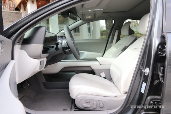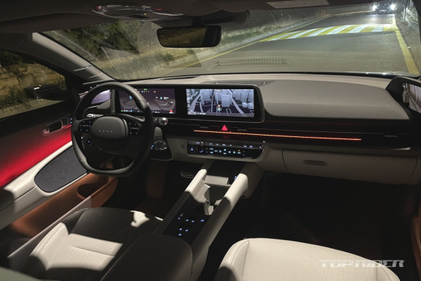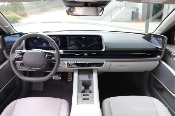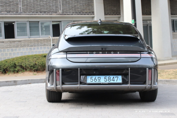 아이오닉6의 차체 크기는 전장 4855mm, 전폭 1880mm, 전고 1495mm, 휠베이스는 2950mm다. 쏘나타보다 전장은 짧지만, 휠베이스는 그랜저보다 길다. 긴 휠베이스로 넓은 실내 공간을 확보한 것은 강점이나, 차체 크기 대비 회전 반경이 다소 크고 이질감이 느껴진다.