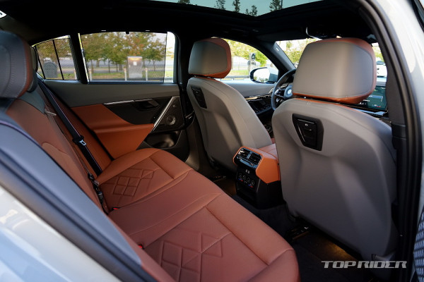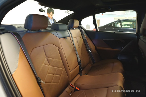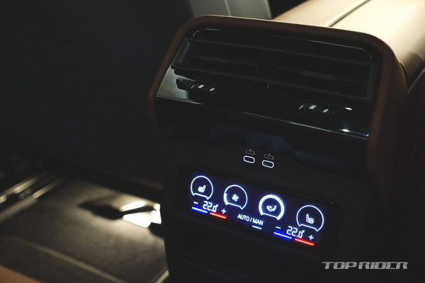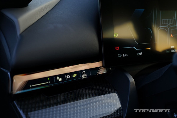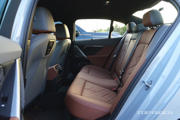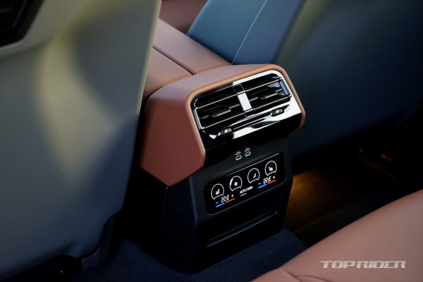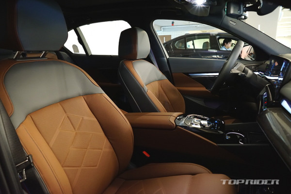5시리즈 최초로 실내를 완전 비건 소재로 구성했는데, 부분적으로 플라스틱 소재의 재질이 아쉽게 느껴지기도 한다. 시승차의 시트는 인디비주얼 가죽 메리노 코퍼 브라운과 아틀라스 그레이가 조합된 사양이다. 각각의 에어벤트는 개별 풍량 조절이 가능해 매력적인 요소다.