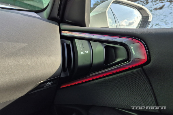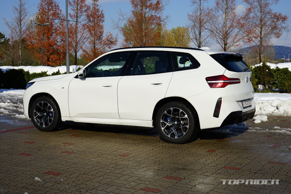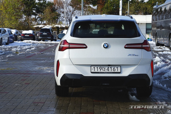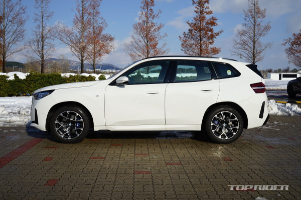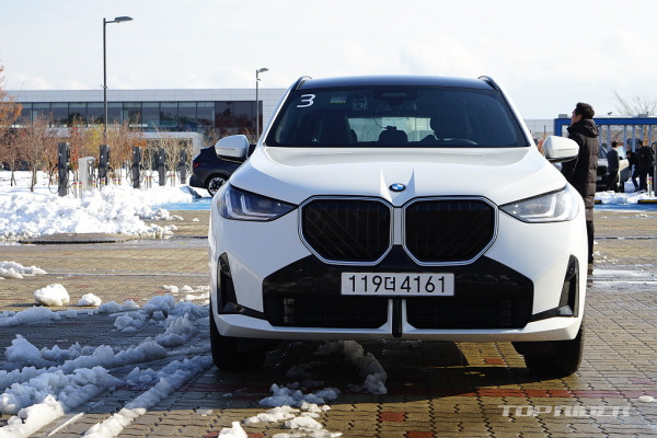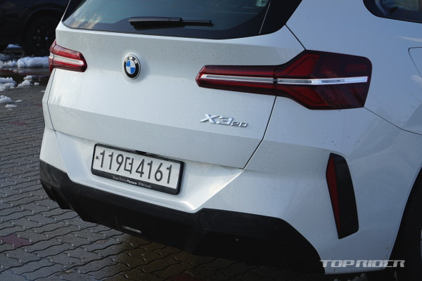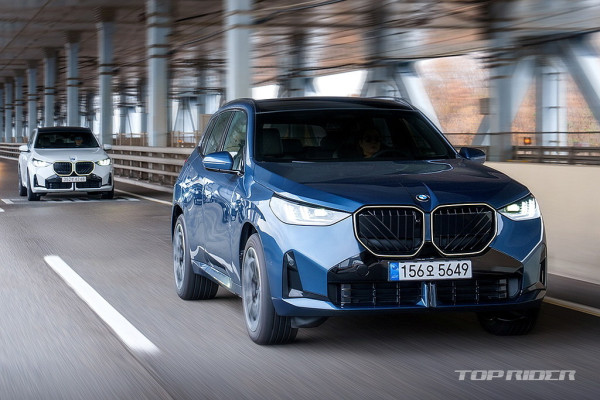 신형 X3의 실차 느낌은 면과 볼륨이 강조된 부피감이 강조된 모습이다. 측면부 캐릭터라인이 강조된 기존 3세대 모델의 날렵한 분위기와는 다르게, 희미해진 캐릭터라인과 함께 하단부 배터리팩 탑재를 고려해 넓어진 측면 패널 면적은 X3의 덩치가 수치보다 크게 느껴진다.