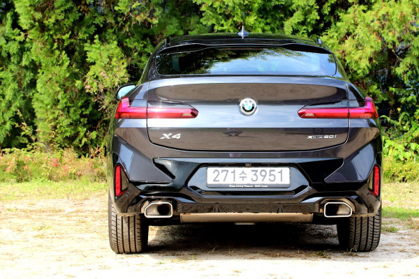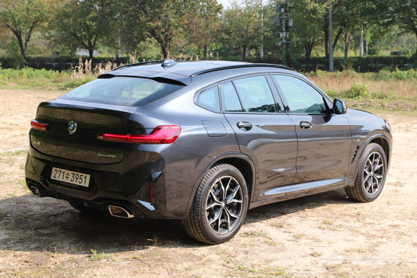 범퍼 하단 3분할된 에어 인테이크로 BMW 특유의 세련된 디테일이 구현됐다. 매끄럽게 떨어지는 쿠페형 루프라인을 갖춘 측면부는 X4의 강점이다. 쭉 뻗은 보닛과 짧은 트렁크 리드도 특징이다. 후면부에는 3D 테일램프와 사각 형태의 머플러, 범퍼 디퓨저가 탑재됐다.