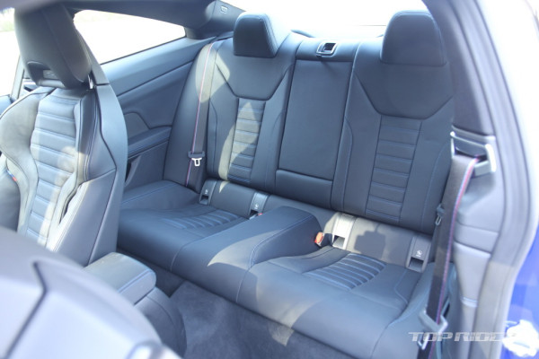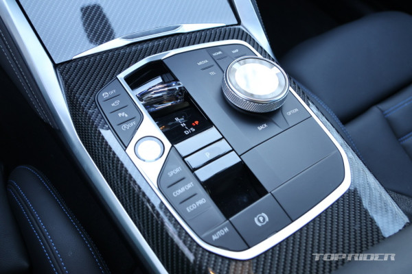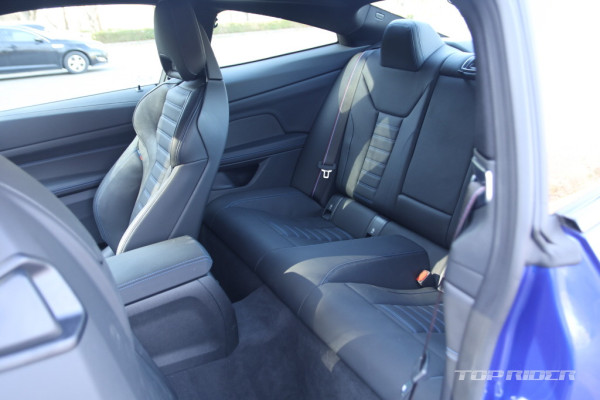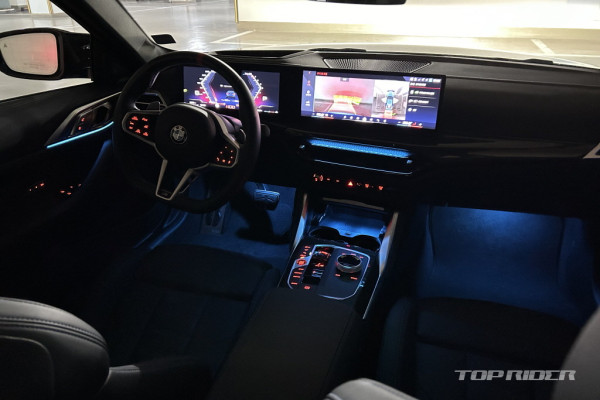 실내에는 12.3인치 디지털 계기판과 14.9인치 디스플레이로 구성된 BMW 커브드 디스플레이, D컷 M 가죽 스티어링 휠, 카본 트림 등이 적용됐다. 최신 현대차 및 제네시스와 다르게 스티어링 휠이 계기판을 가리지 않아 좋다. 시트 포지션은 쿠페 답게 낮다.