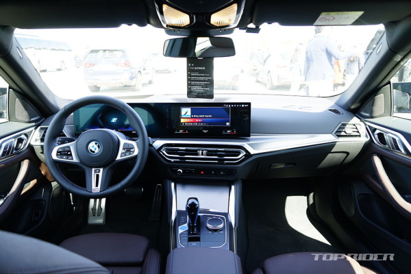 실내에서는 4시리즈와 달리 iX에서 사용된 것과 유사한 일체형 커브드 디스플레이가 적용됐다. 12.3인치 클러스터와 14.9인치 디스플레이에는 8세대 iDrive가 제공된다. 조작법은 전통적인 BMW 방식으로 iX 대비 직관적인 사용이 가능해 기능과 편의성을 함께 만족한다.