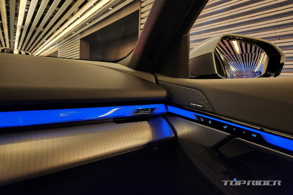 스와로브스키 브랜드와 콜라보한 크리스털 소재의 iDrive 컨트롤러나 커다란 메탈 디테일 스피커, 그리고 가정용 오디오가 연상되는 히든형 패브릭 스피커, 5단계 개별 송풍량 조절이 가능한 에어벤트, 선명한 디스플레이, 그리고 과도기를 지나온 직관적인 UI는 매력적이다.
