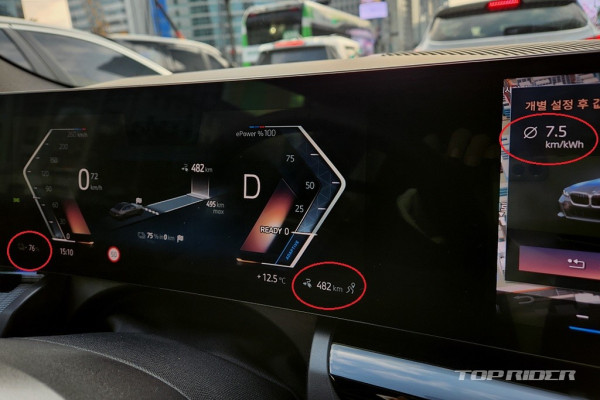 일반적으로 도로 흐름에 따른 마일드한 주행에서 전기차 주행거리가 제원보다 늘어나는 경험을 하는데, i5 eDrive40의 경우 주행거리의 상승 폭이 예상치를 뛰어넘는 결과를 보여줬다. 타이어 그립이 좋은 편이고, 차체 디자인의 공력 특성이 높지 않은 조건이라 더욱 놀랍다.