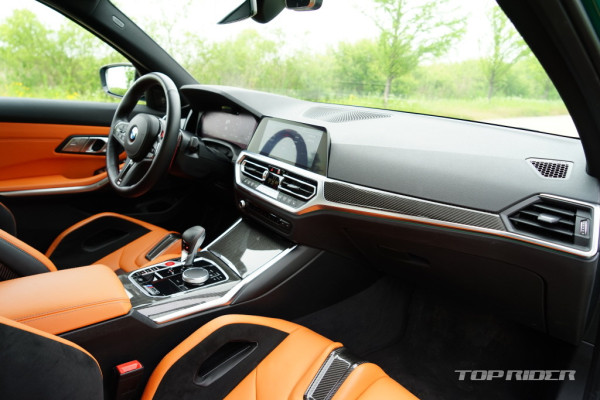 공차중량이 기존 대비 약 200kg 늘었음에도 민첩하고도 매끄러운 코너링 성능을 보인다. 특히 언더 혹은 오버스티어 현상이 발생하면 자세제어장치는 속도 감속을 최소화해 차체 거동을 매끄럽게 잡는다. 과거 M3와 비교해 안정적인 코너링은 M3 매니아에겐 아쉬울 수 있다.